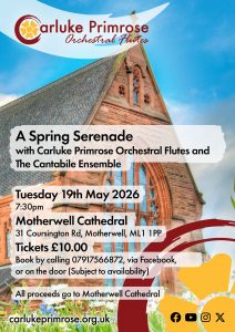 Join Carluke Primrose Orchestral Flutes and The Cantabile Ensemble for an evening of music in the beautiful setting of Motherwell Cathedral.